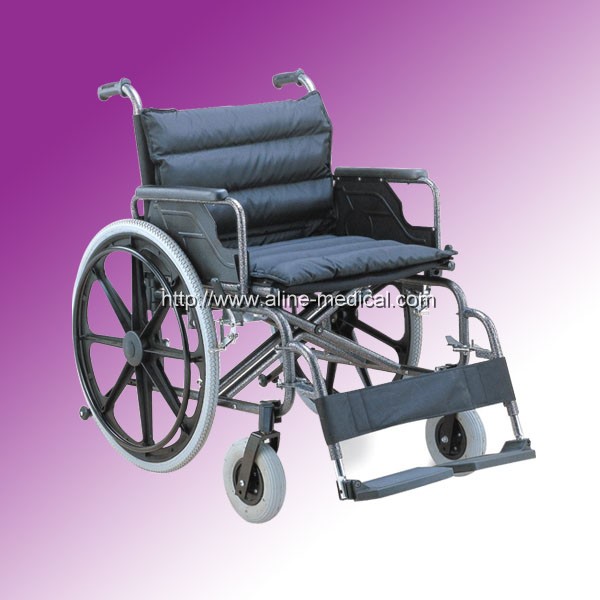 Wider seat, flip up armrest , detachable footrest PU castor, pneumatic mag wheel